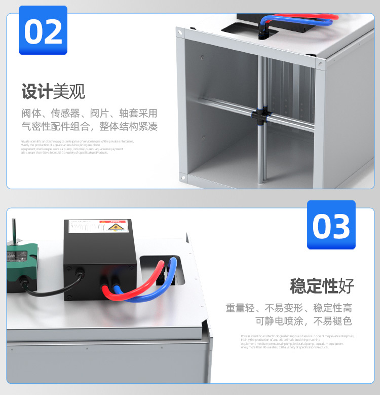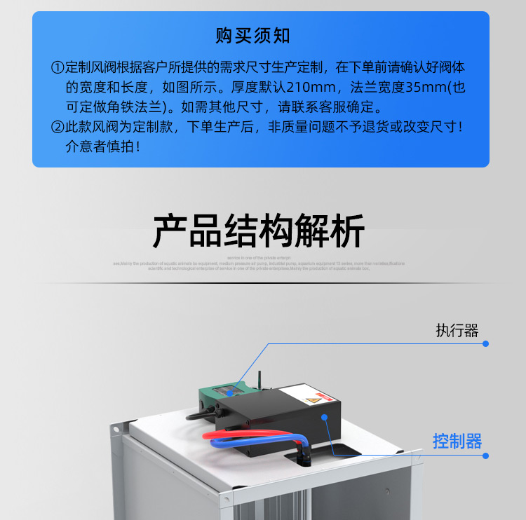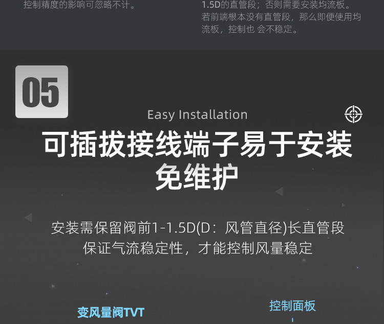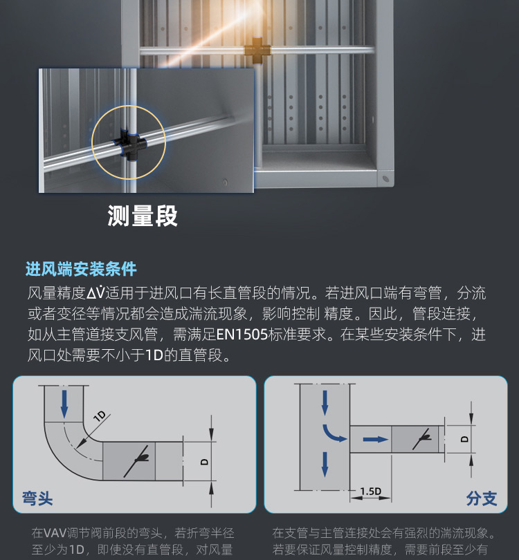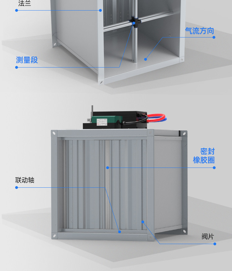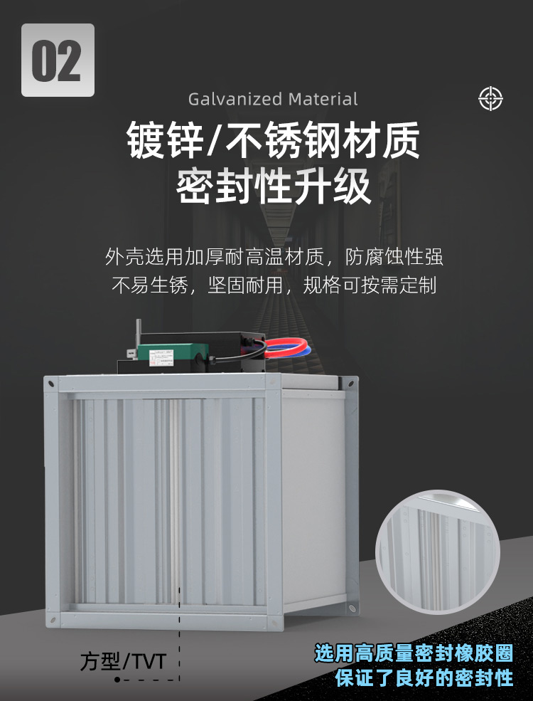 TVAV TVT:矩形变风量调节阀,用于送风或排风,可气密关闭 ,机械部件和电子控制部件组成一体, 在出厂前都已装配好,并完成软管连接和接线。每台设备都设定至所需的风量,并通过气流性能测试。 调节阀内配有多叶阀片和用于测量风量的风压传感器。 TVAV-TVT设备两端带法兰,用于连接风管; 风量控制采用闭环控制,需外部供电。根据控制要求和运行条件选择压力变送器、控制器和执行器。酷睿森控制阀上可以安装任意知名厂商的执行机构产品来满足项目的工况要求。